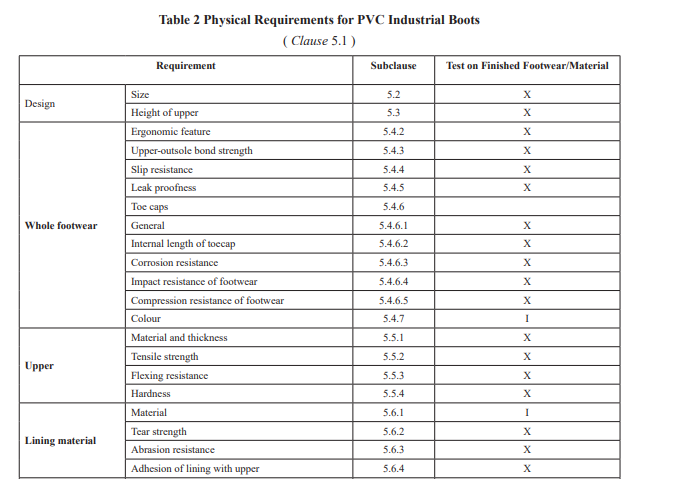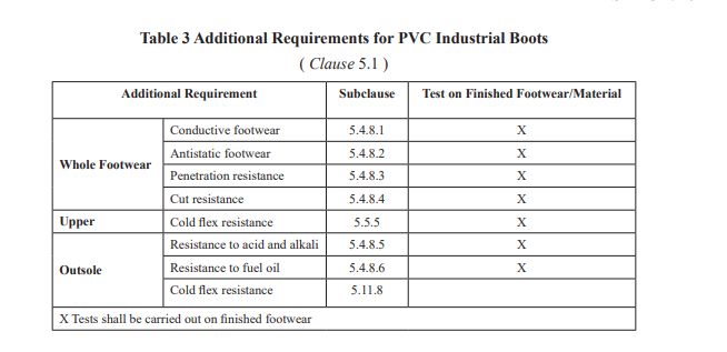 The PVC industrial boots shall conform to the given requirements in the given tables :