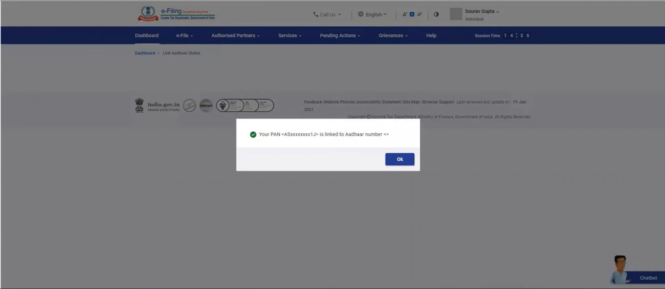 - On successful linking of aadhar and PAN card, a message will appear on your screen.