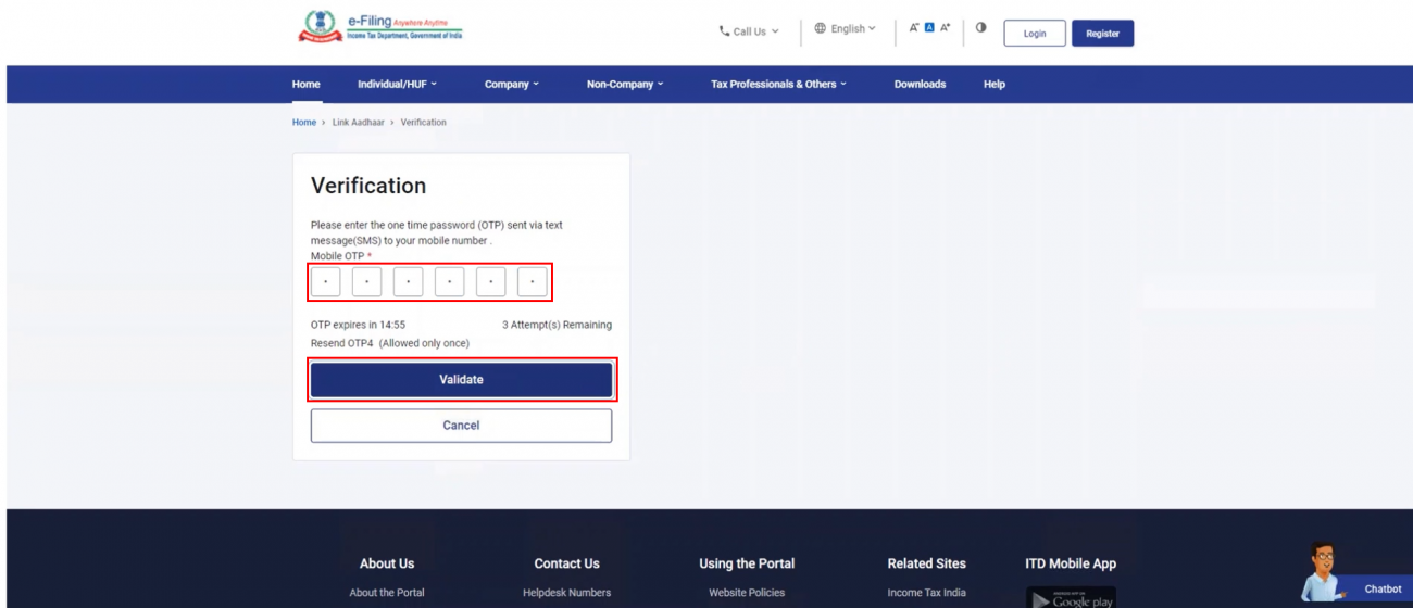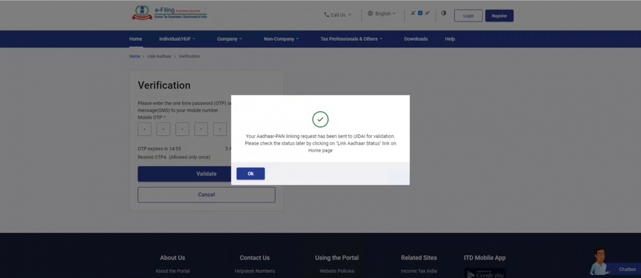 NOTE - In case of unsuccessful validation, you are required to follow the same steps as provided to link your aadhar and PAN cards.