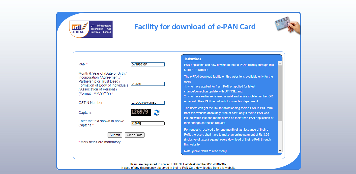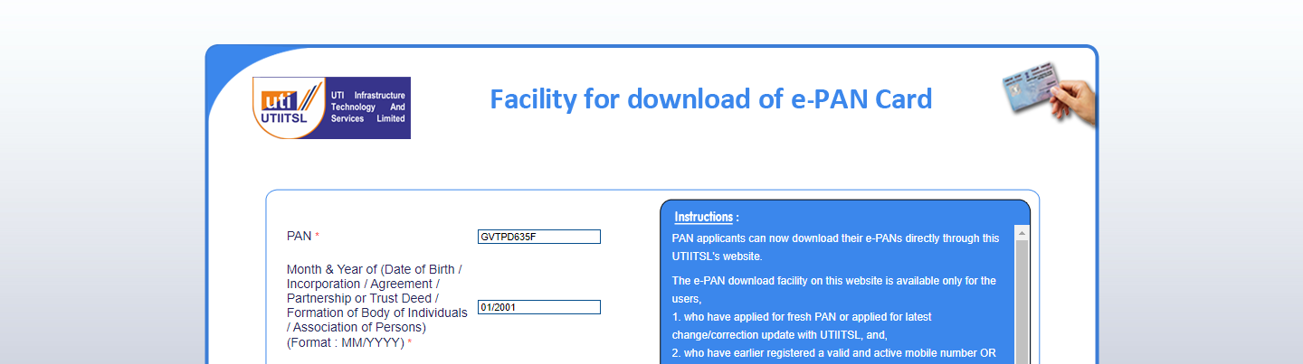 Below mentioned process of PAN card download is applicable to PAN cardholders who have applied through UTIISL -