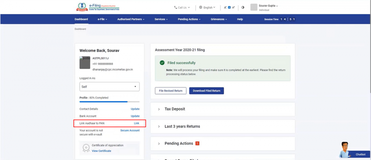 With that, finally, move onto, finally move onto, How to Check Aadhar Card PAN Card Link Status - post login.