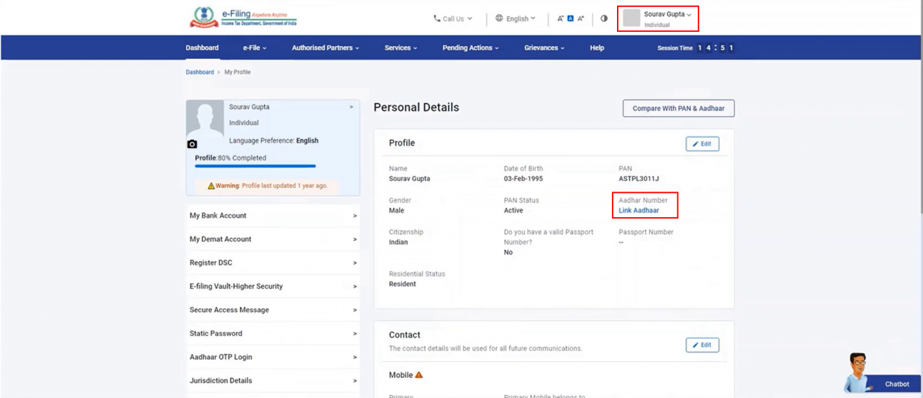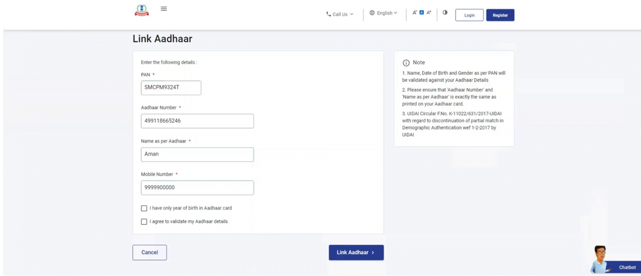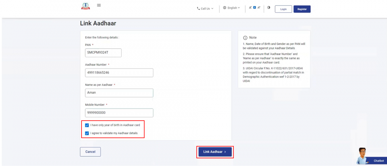 - Provide details of PAN, Aadhaar Number, Name, and a valid Mobile Number.